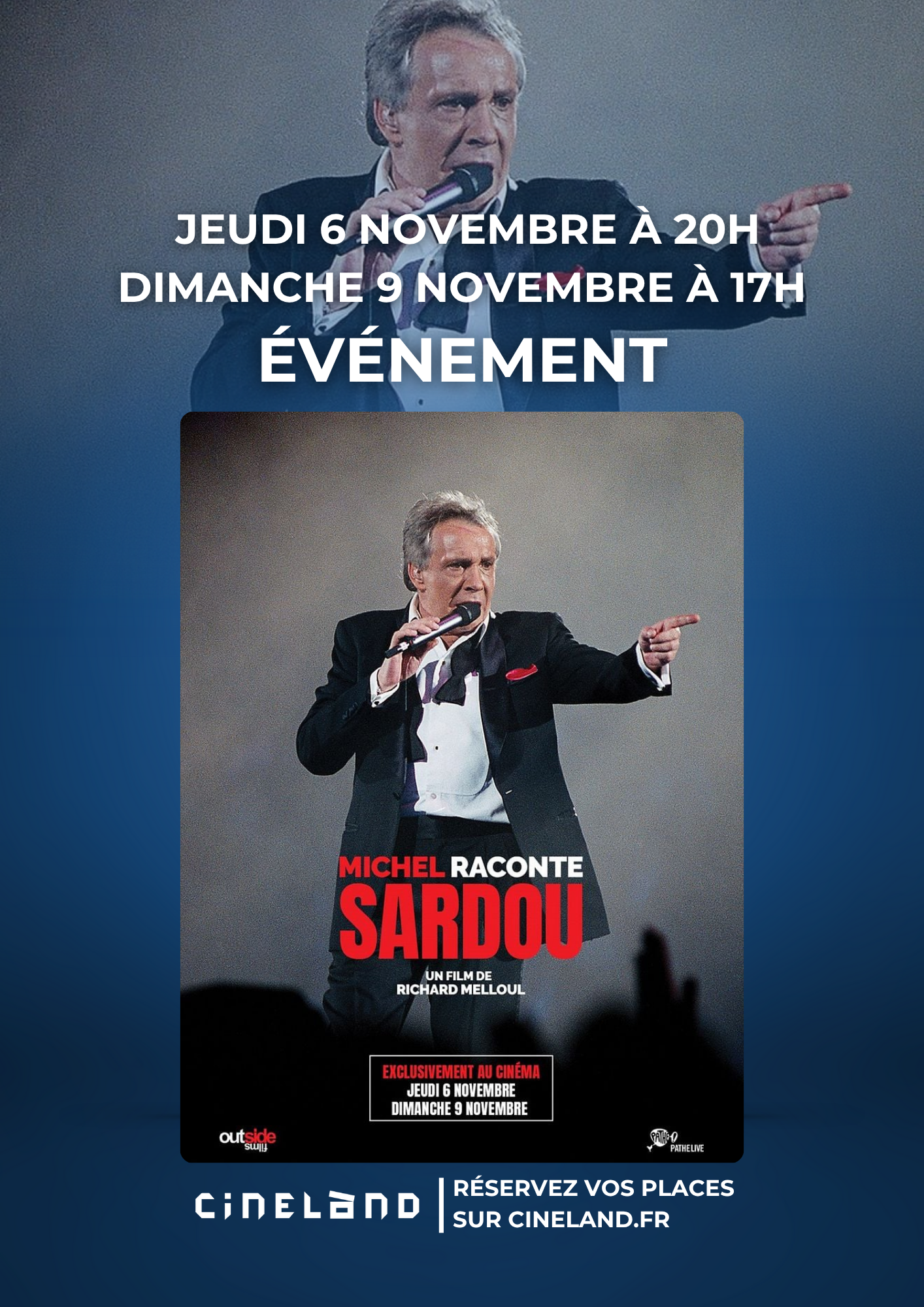 Sardou, l’icône de la chanson française aux 100 millions de disques vendus, donne rendez-vous à ses fans pour un film exceptionnel où, face caméra, il raconte en toute intimité comment son histoire personnelle a façonné sa carrière d’artiste et ses chansons. Michel raconte Sardou est le film référence qui célèbre 60 ans de carrière jour pour jour après la sortie de son premier 45 tours.