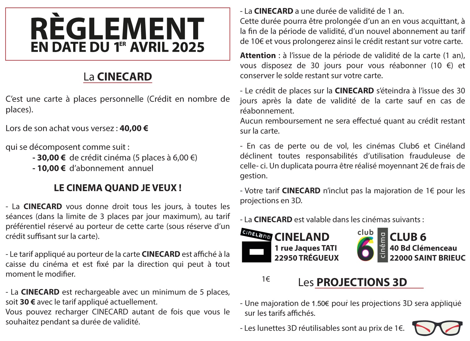 Pour toute demande d'information ou de réservation, contactez-nous à l'adresse tregueux@cineville.fr.